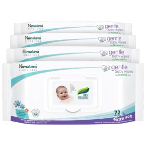 Himalaya Gentle Baby Wipes with Lid (72 wipes x4 packs -288 wipes) |100% Biodegradable Plant-based fabric | Indian Lotus & Aloe Vera | Skin Friendly PH| Extra Soft