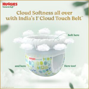 Huggies Natural Soft Premium Baby Diaper Pants, Our No.1 Soft Pants, Medium (M) Size (7-12 Kgs), Pack of 60 diapers | Cloud Softness All over with India’s 1st Cloud Touch BeltTM