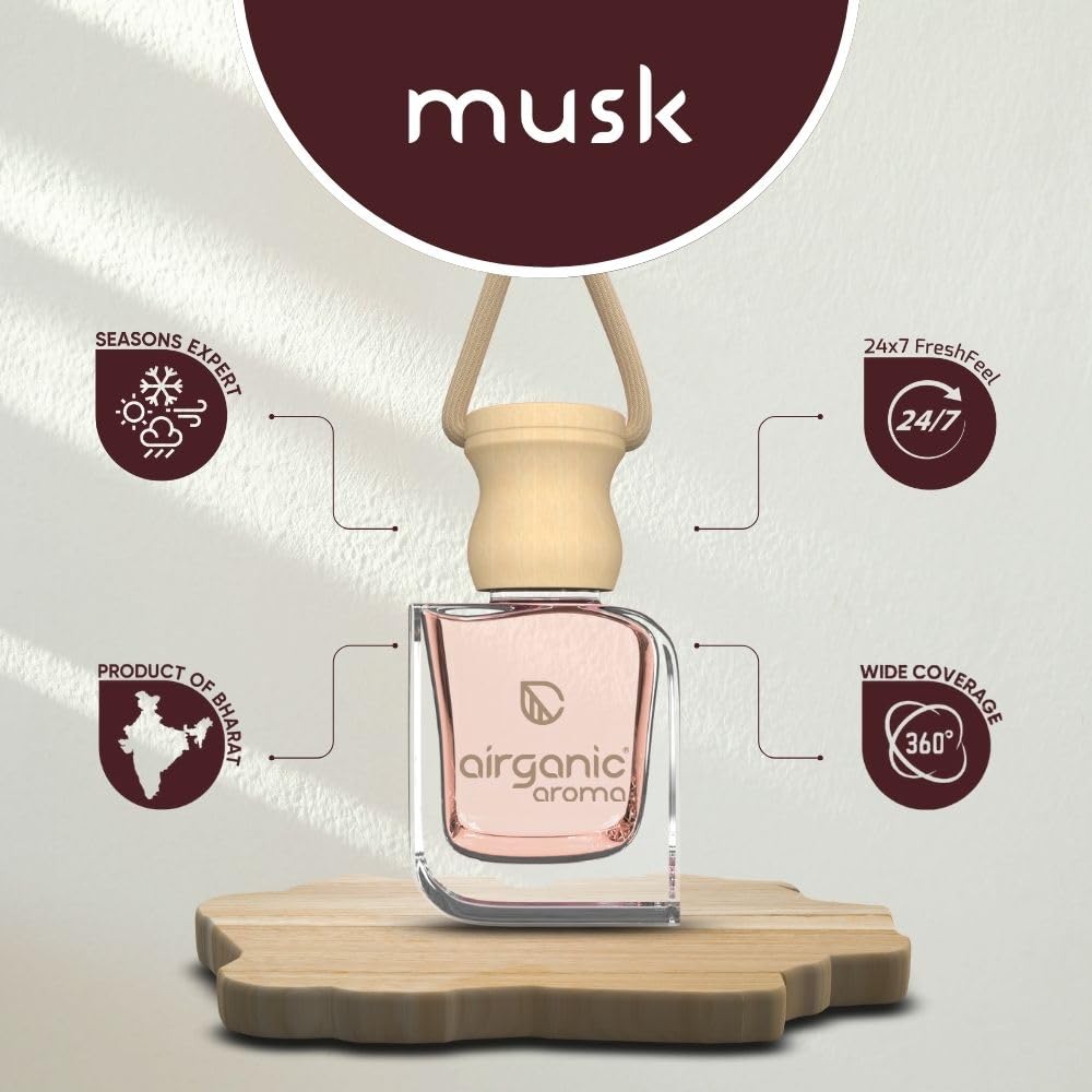 Airganic Swing Prime Car Perfume Hanging Pod | Musk, Camphor & Cool Aqua Water| Pack 3 | Car Air Freshener |Natural Essential Fragrance Oils in Glass Bottle with Wooden Diffuser Lid |Last Upto 60 Days