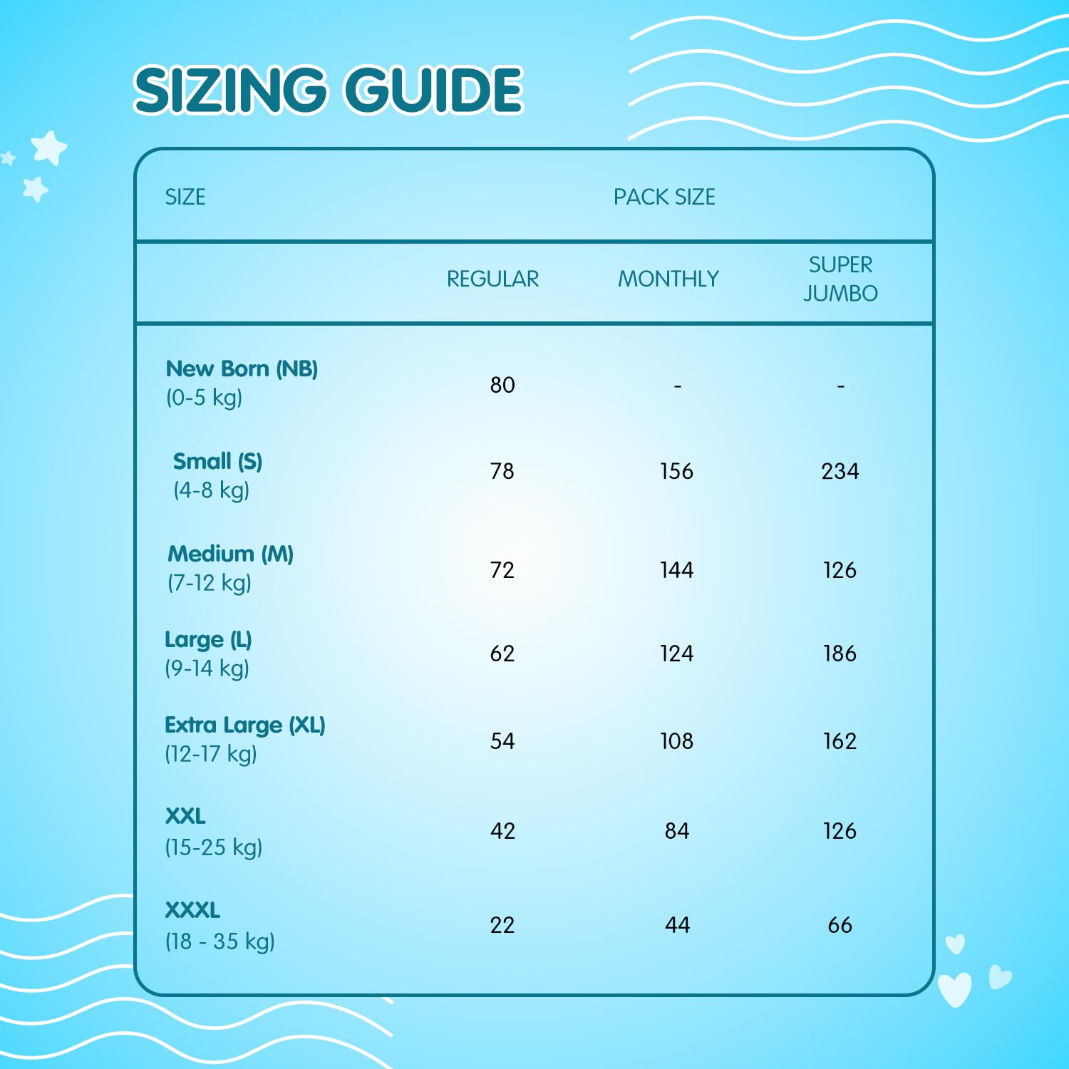 Comes in Various Sizes: Supples Diapers are available in sizes NB, S, M, L, XL, XXL and XXXL
