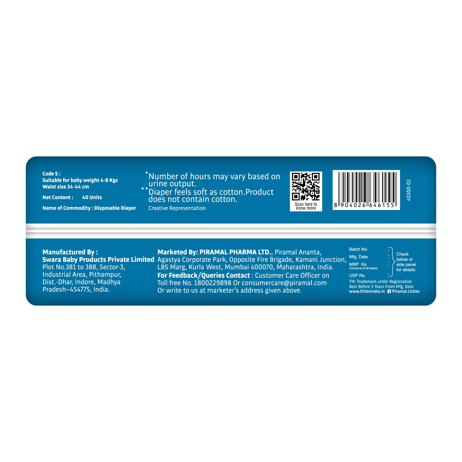 Manufacturer : Plot No 381 to 388, Sector 3, Industrial Area, Pithampur, Dist-Dhar, Indore, Madhya Pradesh 454774, Swara Baby Products Private Limited