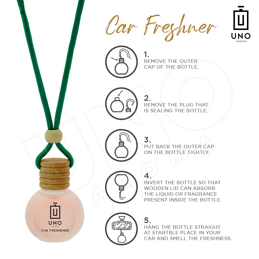 UNO AROMA Musk Car Air Freshener, 15ml, Long Lasting Hanging car perfume, Toxin-Free Oil in Glass Bottle with Wooden Diffuser, Car Accessories for fresh aroma, Last Upto-60 Days